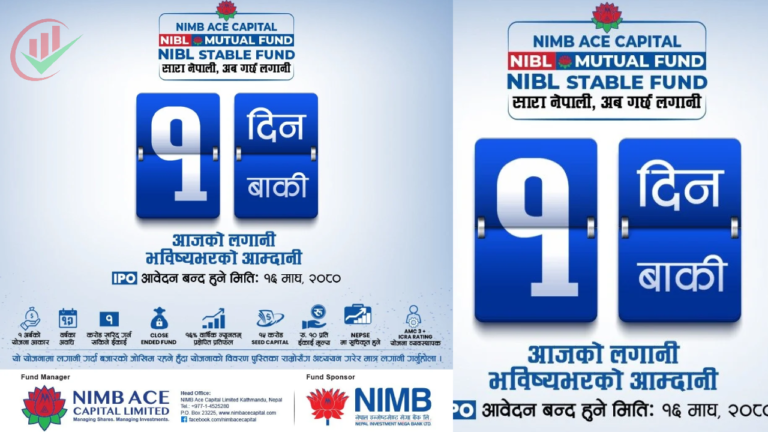 एनआइबिएल स्टेबल फन्डमा आवेदन दिने आज अन्तिम दिन, हालसम्म कति पर्यो आवेदन? २०८० माघ १६ मंगलवार • बिजनेस न्यूज नेपाल
