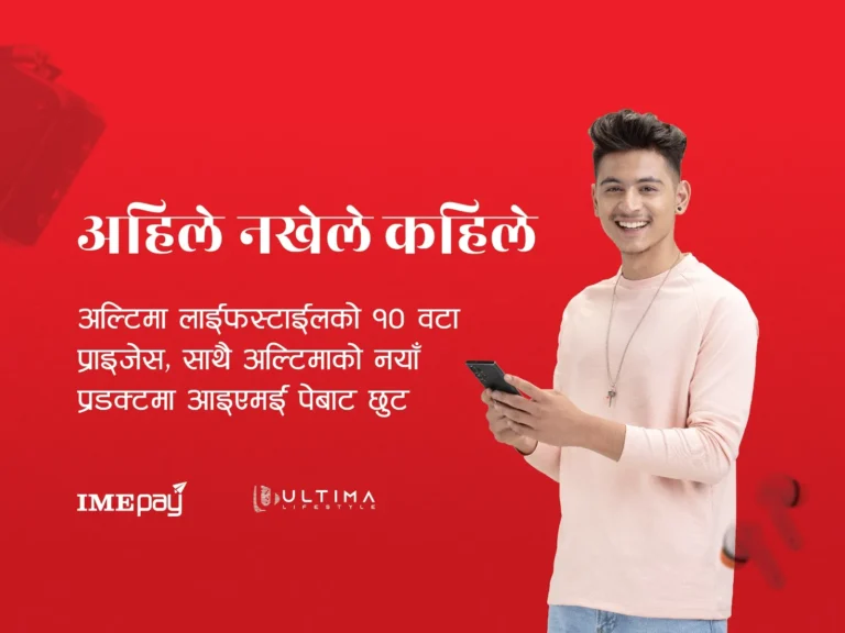 आइएमई पे एपमा १ रुपैयाँको खेलः उपहार स्वरुप अल्टिमा लाईफस्टाईलको प्रडक्टहरु २०८० माघ ७ आईतवार • बिजनेस न्यूज नेपाल