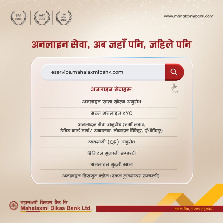 महालक्ष्मी विकास बैंकले सञ्चालनमा ल्यायो परिष्कृत अनलाइन सेवा २०८० भाद्र १० आईतवार • बिजनेस न्यूज नेपाल