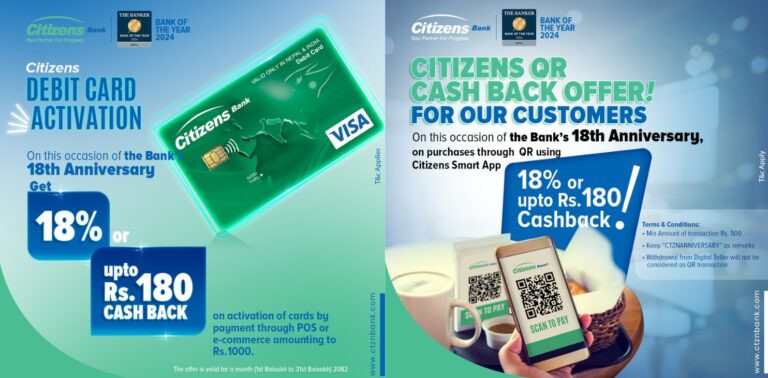 वार्षिकोत्सवको अवसरमा सिटिजन बैंकले ल्यायो छुट र क्यासब्याक योजना २०८२ बैशाख १ सोमबार • बिजनेस न्यूज नेपाल