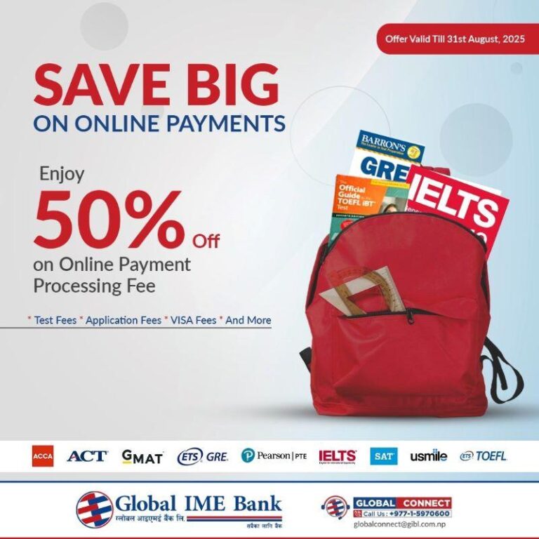 ग्लोबल आइएमई बैंकको छुट योजना सार्वजनिक: अनलाइन भुक्तानी गर्दा ५०% छुट २०८१ फाल्गुन २९ बिहीबार • बिजनेस न्यूज नेपाल