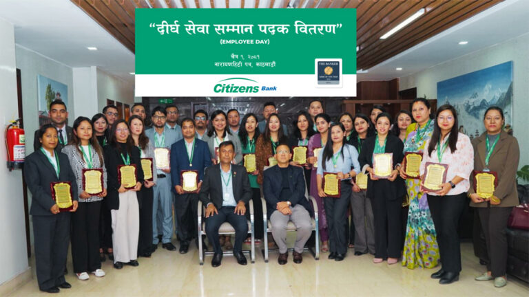 सिटिजन्स बैंकद्धारा १५ वर्ष सेवा गरेका कर्मचारीलाई दीर्घ सेवा सम्मान २०८१ चैत्र १ शुक्रबार • बिजनेस न्यूज नेपाल