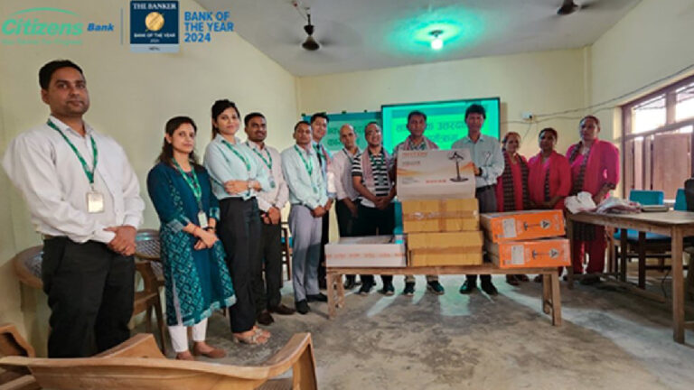 सिटिजन्स बैंकद्वारा रामरती माध्यमिक विद्यालयलाई पंखा सहयोग २०८२ जेष्ठ २ शुक्रबार • बिजनेस न्यूज नेपाल