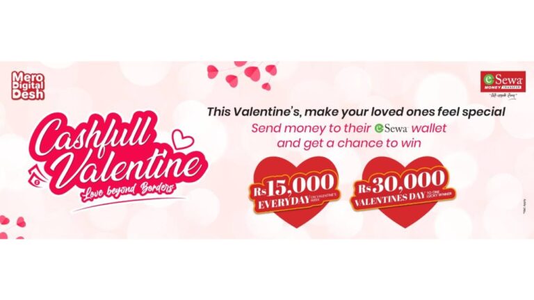 ईसेवाको ‘क्यासफुल भ्यालेन्टाइन’ अभियान: ईसेवा वालेटमा रेमिट्यान्स पठाएर ३० हजारसम्म जित्न सकिने २०८१ माघ २४ बिहीबार • बिजनेस न्यूज नेपाल