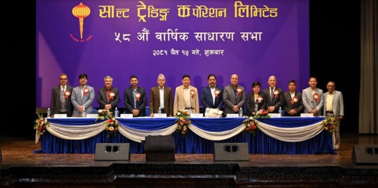 साल्ट ट्रेडिङ्ग कर्पोरेशनको ५८औं वार्षिक साधारण सभा आज बस्दै २०८१ चैत्र १५ शुक्रबार • -बिजनेश न्यूज नेपाल