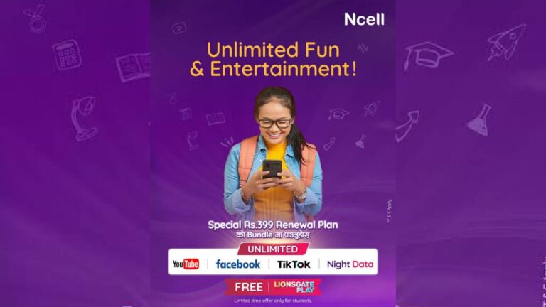 एनसेल सधैं अन रिन्युअलः विद्यार्थीहरुलाई अनलिमिटेड फेसबुक, टिकटक र युट्युव पनि २०८२ श्रावण ७ बुधबार • -बिजनेश न्यूज नेपाल
