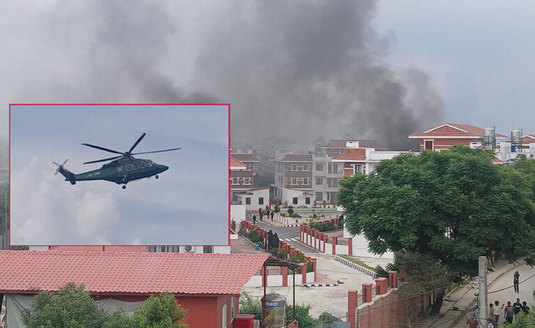 भैसेपाटीस्थित मन्त्री निवासबाट हेलिकप्टरमार्फत उद्धार, शीर्ष नेताहरूको घरमा आक्रमण आगजनी २०८२ भाद्र २४ मंगलवार • -बिजनेश न्यूज नेपाल