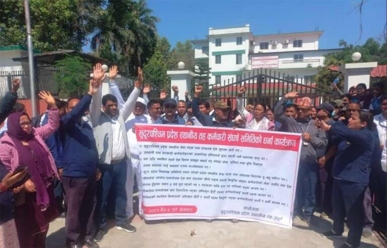 स्थानीय सेवा ऐन तत्काल जारी गर्न माग गर्दै मुख्यमन्त्री कार्यालयको मूल गेटमा धर्ना सुरू २०८१ चैत्र ४ सोमबार • बिजनेस न्यूज नेपाल