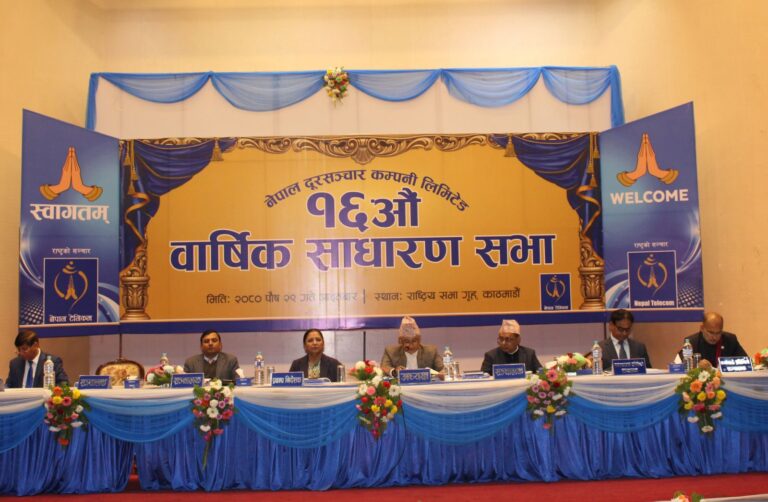 नेपाल टेलिकमको १६औं वार्षिक साधारण सभा सम्पन्न, लाभाश वितरण गर्ने २०८० पुष २९ आईतवार • बिजनेस न्यूज नेपाल
