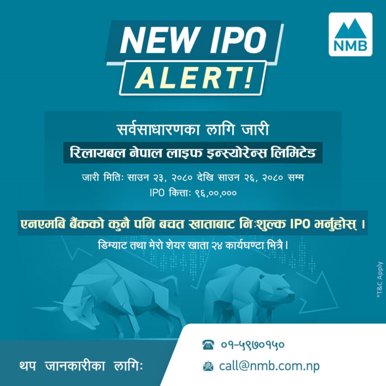 साउन २३ गतेदेखि रिलायबल नेपालको आईपीओ आउँदै, प्रतिकित्ता कति पर्छ? २०८० श्रावण २२ सोमबार • बिजनेस न्यूज नेपाल